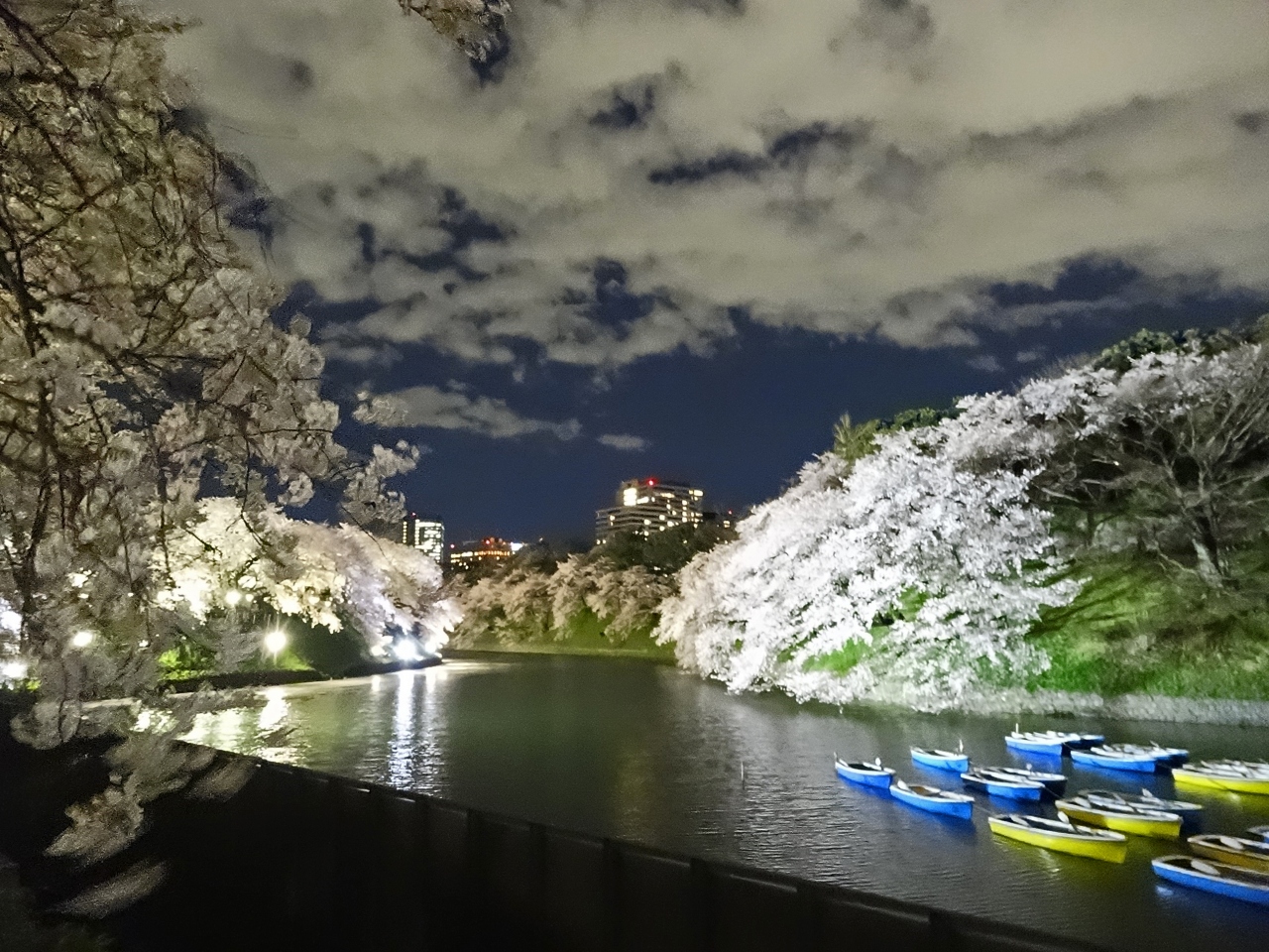 千鳥ケ淵の夜桜が一番きれいなのは,ボート乗り場あたりだと思います