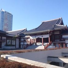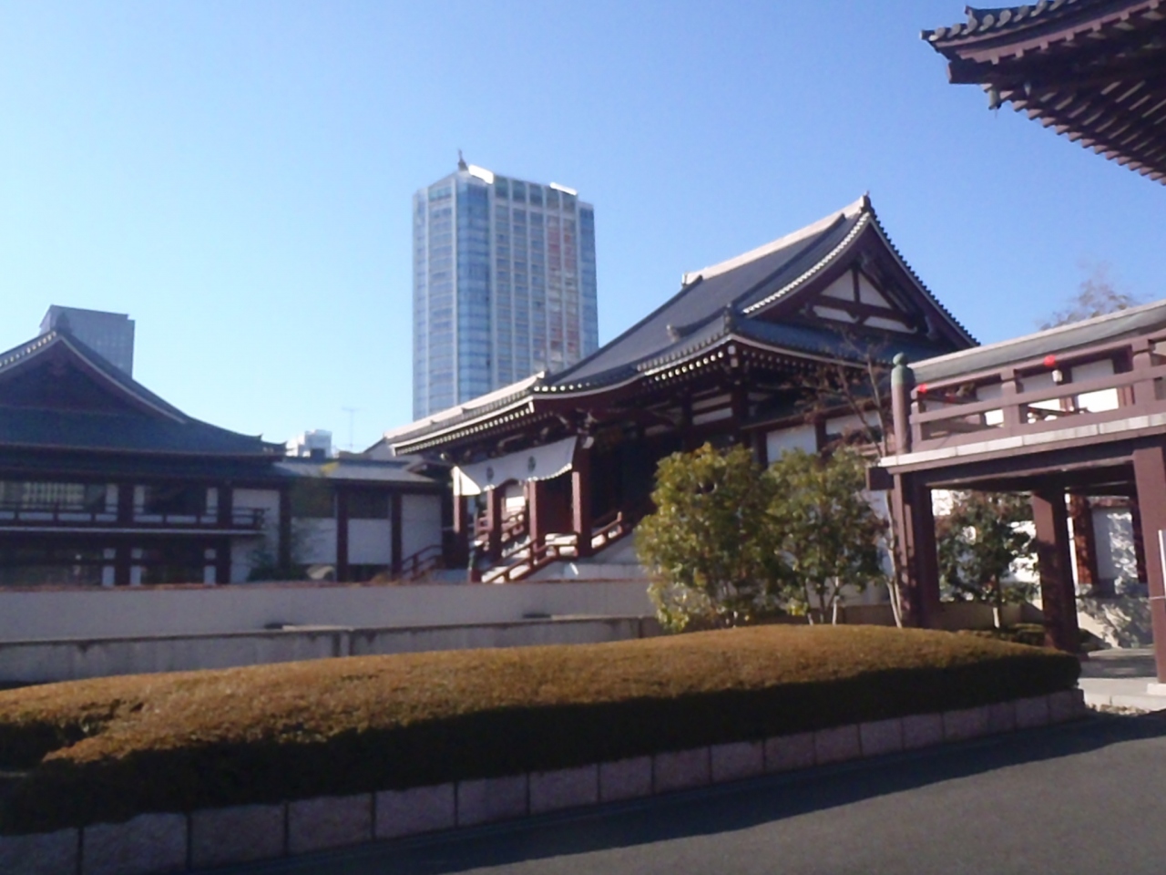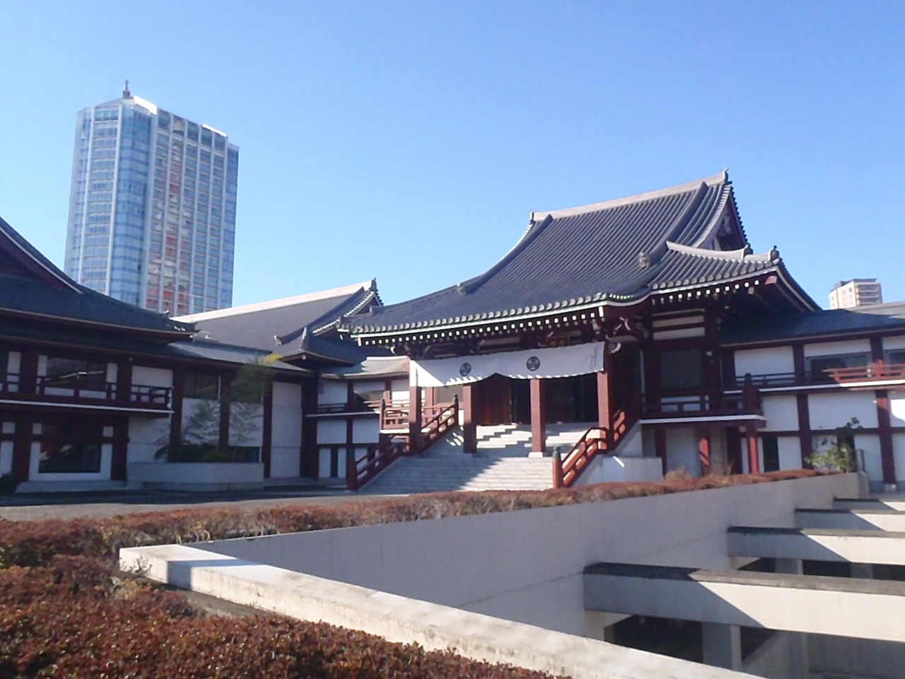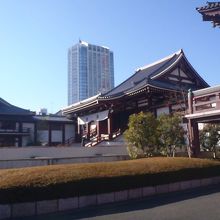 芝公園日比谷通り沿いにある徳川将軍家墓所がある浄土宗大本山増上寺の大殿と増上寺会館の間にあります。