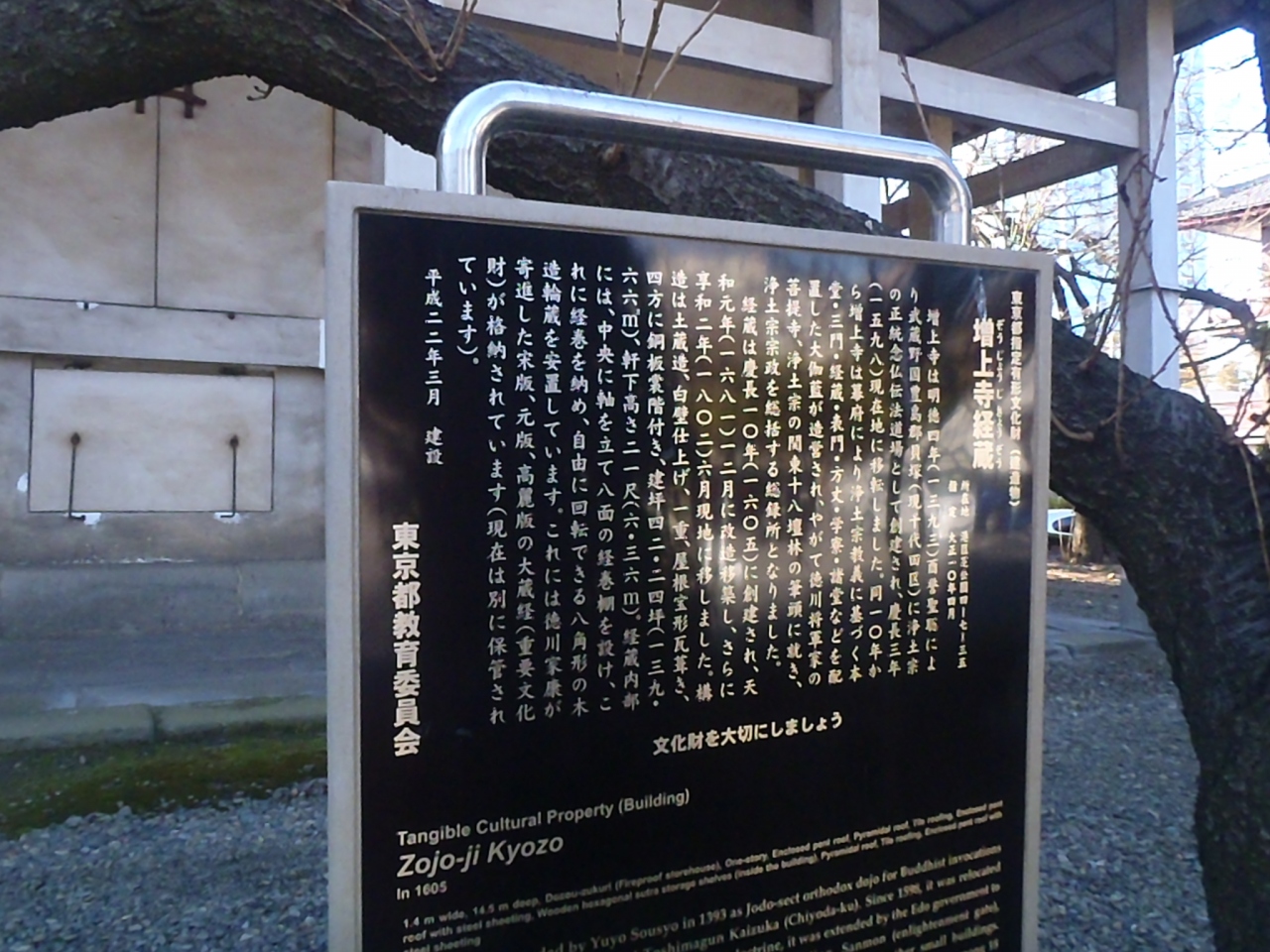 経蔵の前にある案内板によれば経典が保管されているのだが、徳川家康が寄進した宋版、元版、高麗版の大蔵経が格納されているそうです。