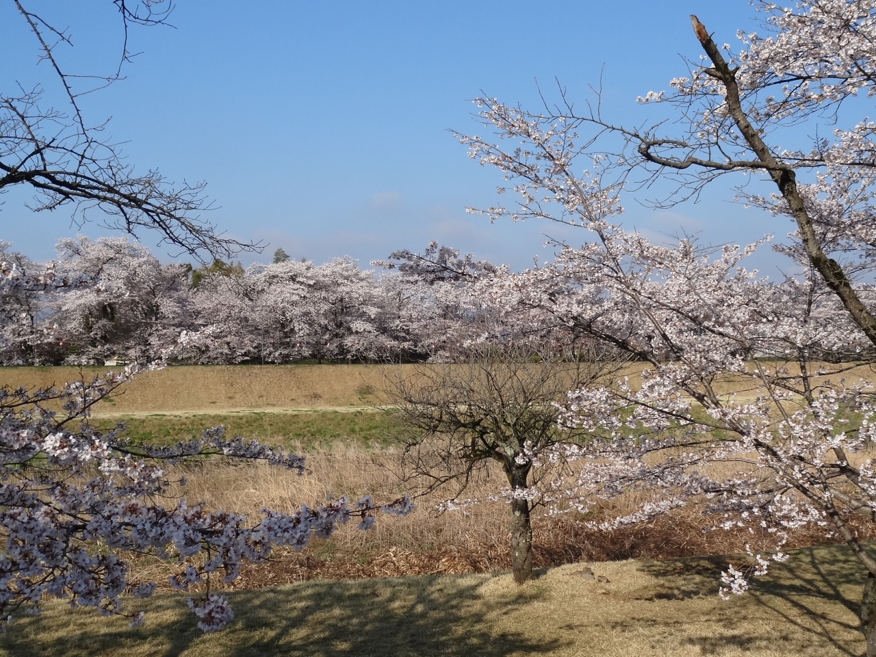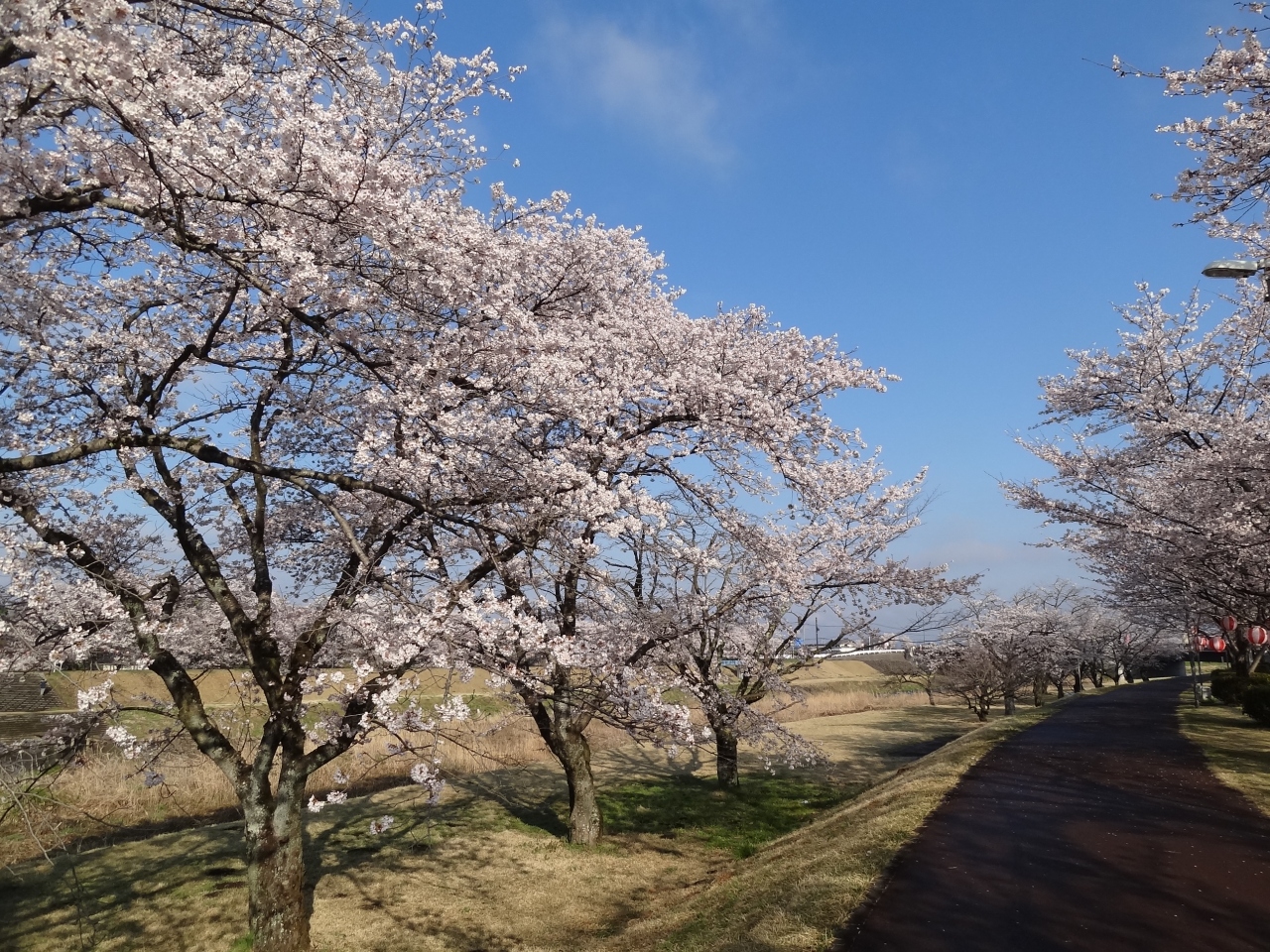 宇都宮から栃木街道を南へ、壬生町を流れる黒川に差し掛かったところ土手に桜並木が見えました。その並木道を川沿いに進むと駐車場のある公園‘東雲公園’。桜で有名だったとは‥行くまで知りませんでした。