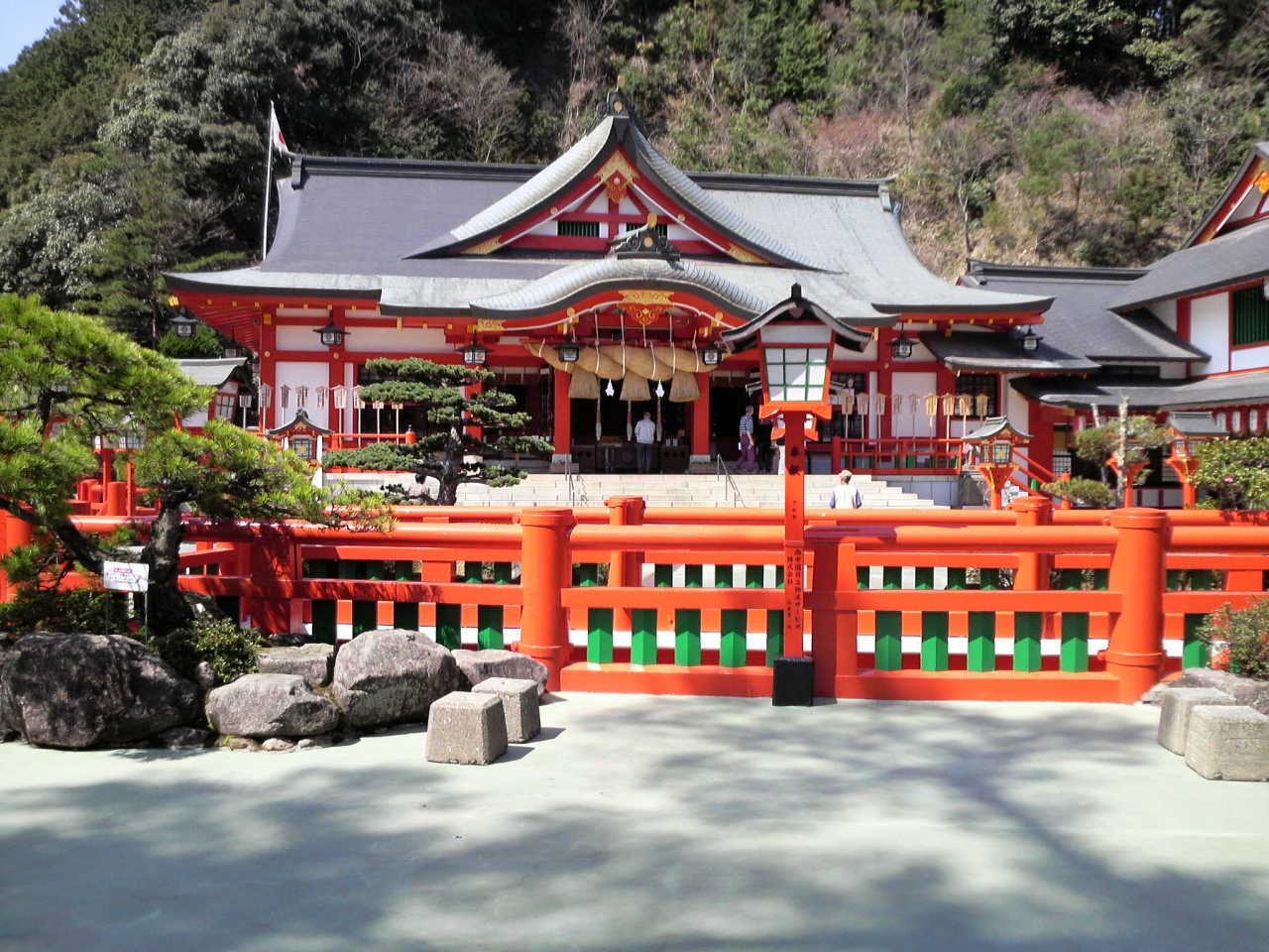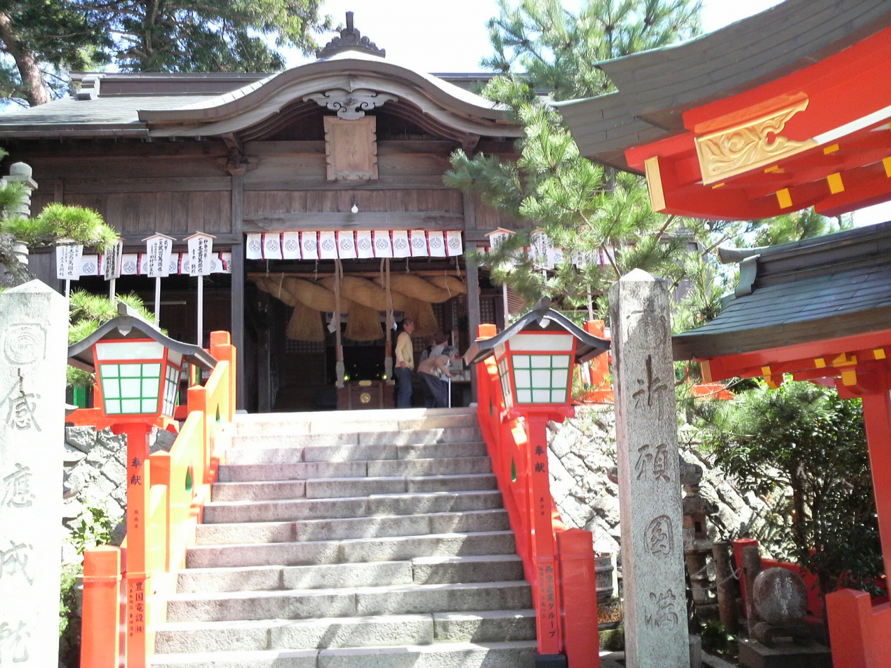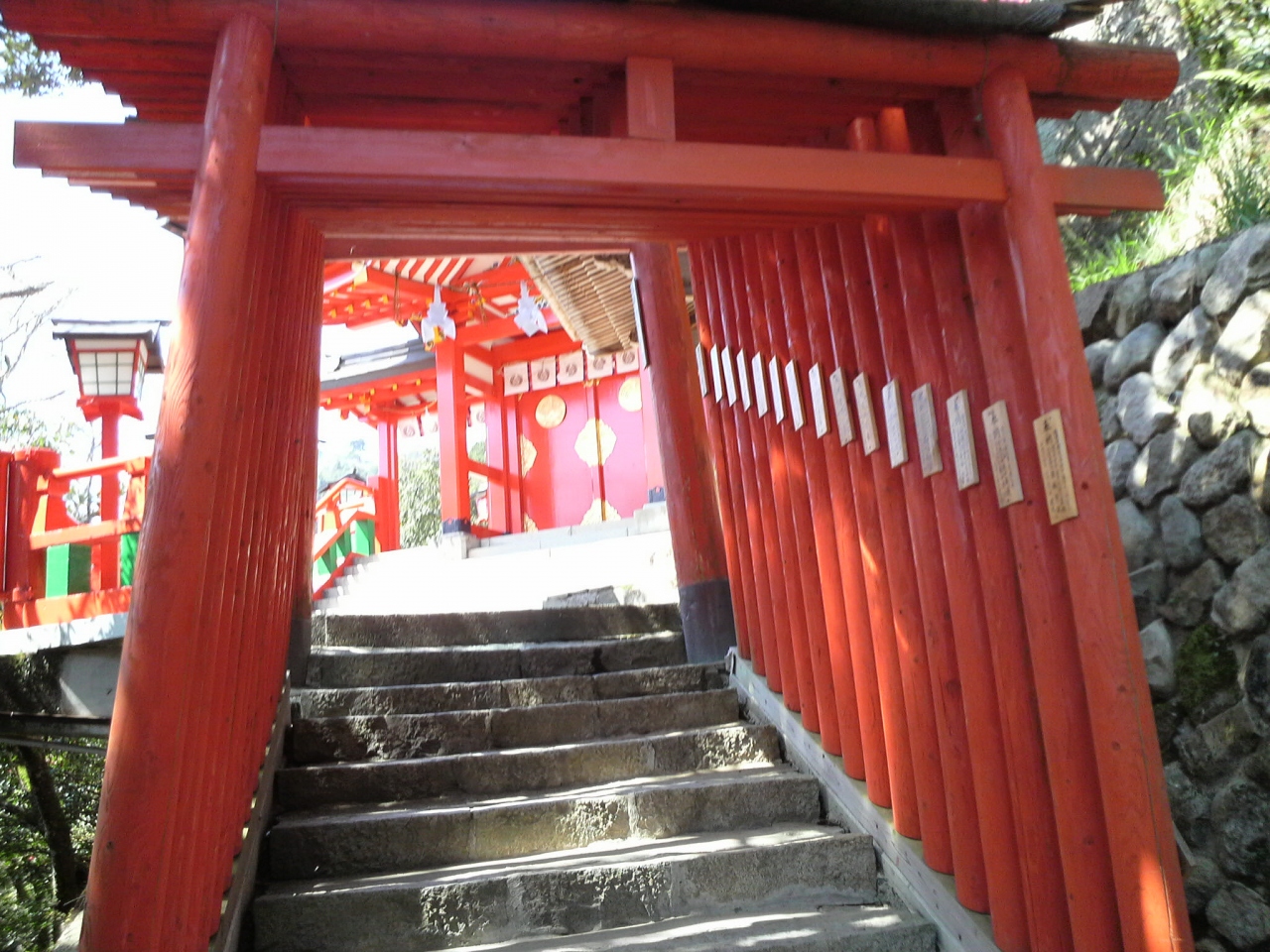 山陰の小京都、津和野に鎮座する神社です。高校の前の参道を登り、城跡(市街を眺めるならここ)を横目に見ながらいくと、朱塗りの神社が見えてきます。駐車場は広いのですが、斜面なので注意が必要です。そして、階段を登ると本殿です。