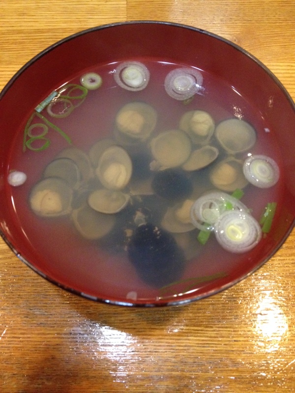唯一ご当地メニュー【しじみ汁】があったので人数分頼みました。