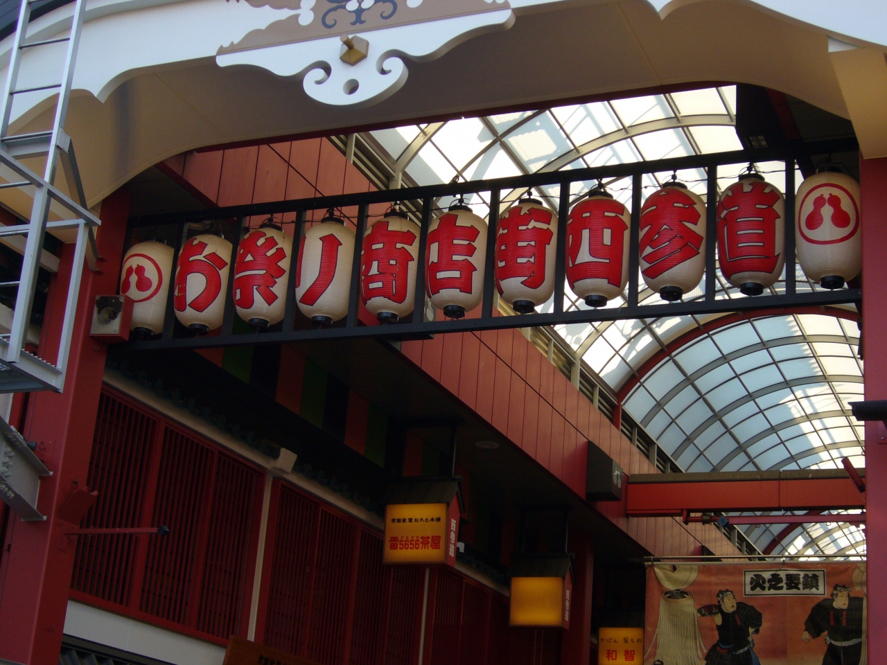 浅草観音西側からロック通りへと抜けるアーケード街です。江戸の町風情をうまく表現していてお客さんの目を引くアーケード街の入口。日舞・ステージ衣装、半纏や腹掛、股 引き、浴衣などお祭りに欠かせないアイテム、小道具などを販売しているお店が多くあります。