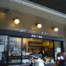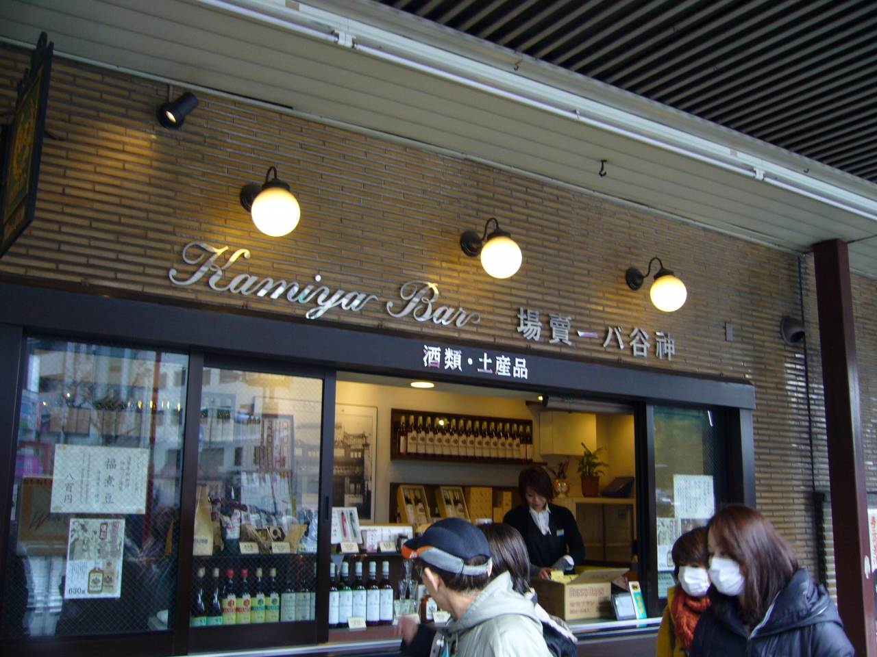 雷門通り沿いにある神谷バーがあります。大人の社交場のような懐かしい酒場です。店頭には神谷ワインなど販売しています。また明るい雰囲気の店内は、おつまみニューが豊富なので観光の休憩に立ち寄られている方が多いですね。ランチメニューもありました。