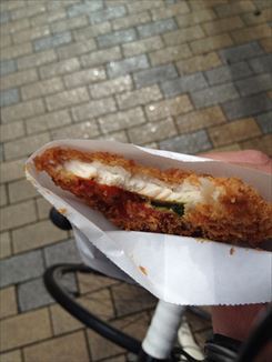 森谷商店 (モリヤショウテン)の新商品です。商品名は、チキマルです。このチキマルは、チキンアkツマルゲリータです。このあっさりとしたササミの中に、バジルソース・トマトソース・チーズです。ぜひ、一度、食べてみてください。