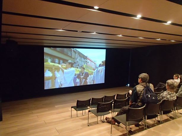 、多目的スペースにて、三社祭りに関する歴史や実際の祭りの様子を無料で見る事ができます。