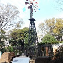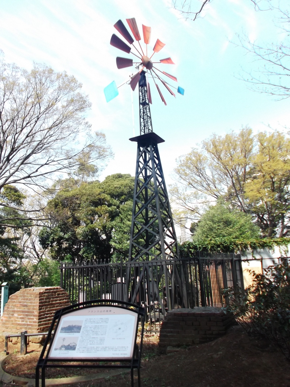 港の見える丘公園フランス山地区の庭園広場と林間広場の間にあります。風車が建っているところ(傍)に側壁の部分や下地の基礎、階段の残存があり、解説板で説明されています。近くにはレンガ瓦造りの井戸遺構もみることできます。
