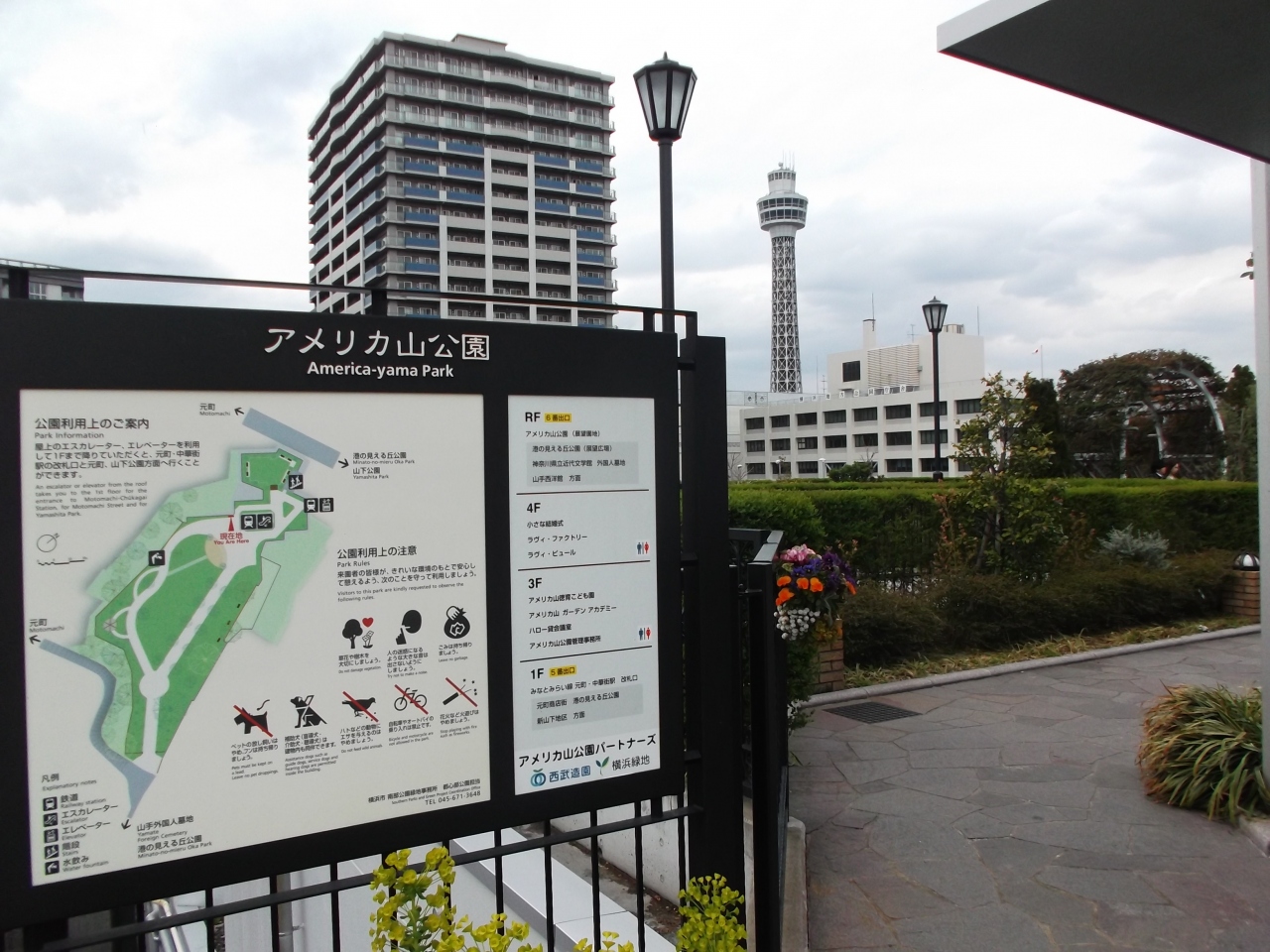 - 草花芝生の公園。マリンタワー方面絶景