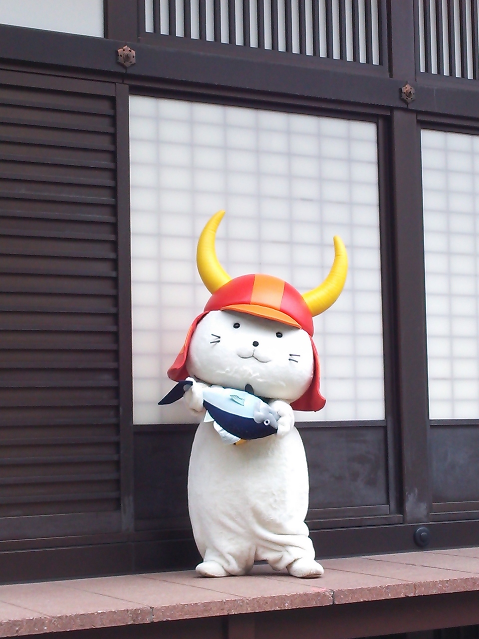彦根城の説明書にひこにゃんの事を・とにかくゆるーいキャラなので、大目に見守ってあげてください・・と書いてありましたが、まさしくシャッターポイントの時、逆さに魚を持ってポーズしていました(笑)