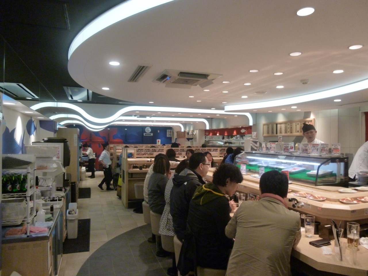 観劇の帰りに晩御飯と思い、道頓堀へ。寿司でもつまもうと入った回転寿司。西宮ガーデンズでおなじみの大起水産。店内にはいってビックリ。日本語よりも、中国語・韓国語・英語などの外国語がほとんど。左隣には、韓国の若い女性が二人。右となりは台湾から来たらしきカップルがお寿司の写真を撮りながらワイワイ。向こう側には、イタリア人ポイ顔をした????男性グループが。周りはほとんどエトランゼ。