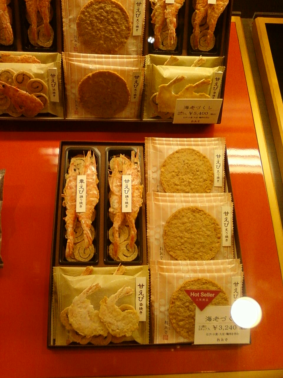ここの桂新堂さんは、新宿駅東口から四分くらい、また、東京メトロ新宿三丁目駅からすぐのところにある新宿伊勢丹の地下一階、食品フロアにあります。エスカレーターの脇におせんべい屋さんが集中しているのですが、その一角、せんべい屋のゆかりさんのとなりにあります。海老をメインとしたおせんべいで、えびそのものの形が印象的です。おせんべいは軽くて食べやすく、カルシウムが良いですね。店員さんもとてもさわやかでした。