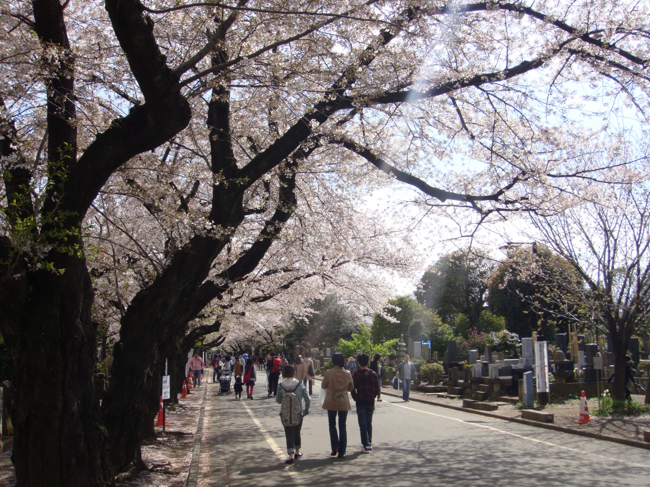 日暮里駅を降りて、紅葉坂の階段を上り、まず谷中霊園の真ん中を貫く「桜通り」から散策を開始しました。付近には高層ビルやマンションもなく、古い家屋が軒を並べています。時節柄花見の観光客が大勢おりましたが、山手線の内側にあって、この静けさはいつまでも残してほしいものです。