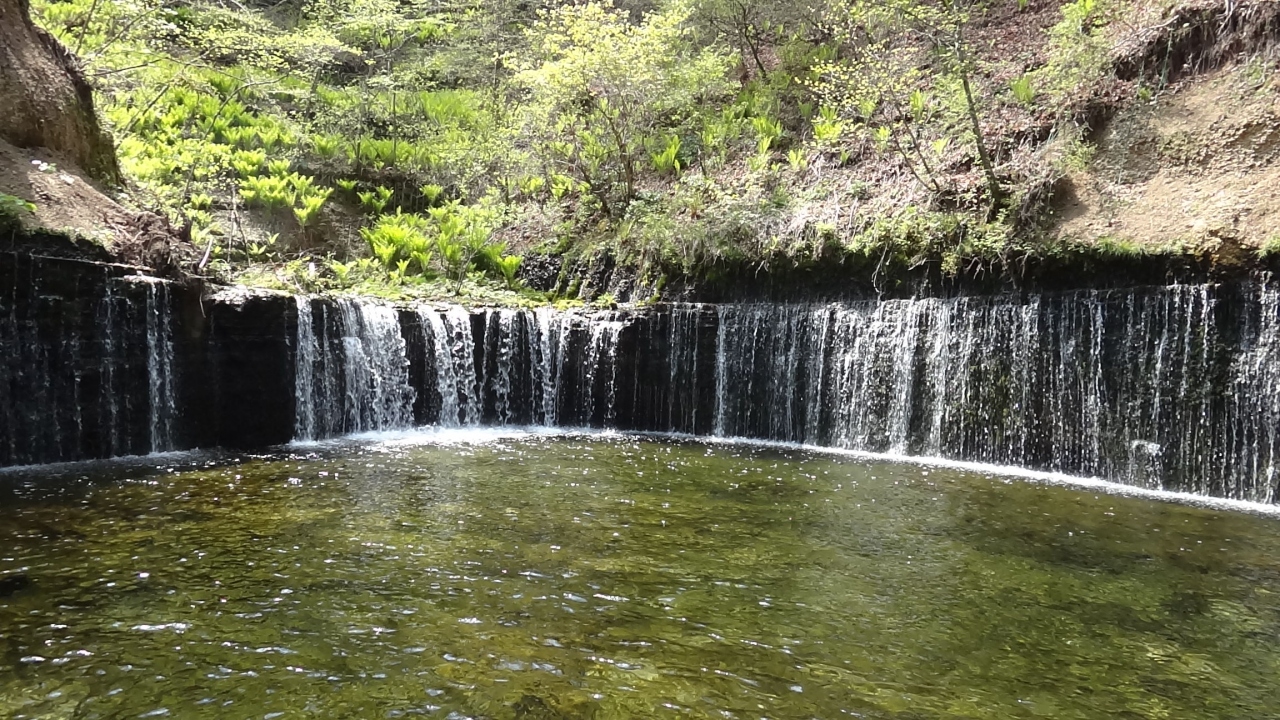 駐車場からしばらく小川のそばを歩いていくと白糸の滝がありました!近くには熊出没注意の看板があり少しビックリしました。その名の通り白糸のように流れる滝はきれいです。自然を感じることが出来、行ってよかった!