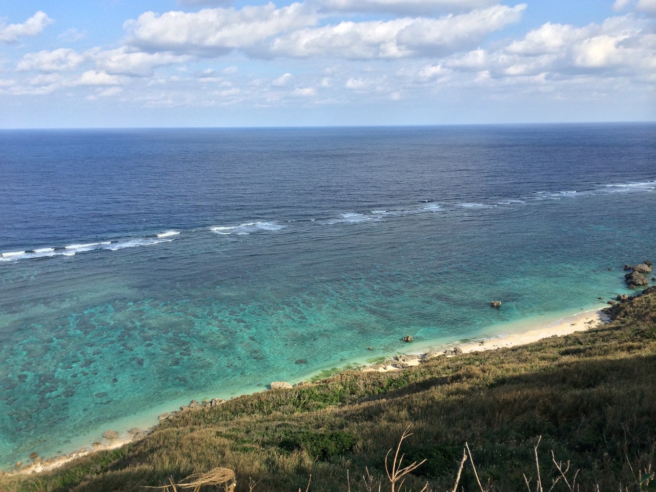 エメラルドグリーンの海が海岸線に広がっているのが見れます。