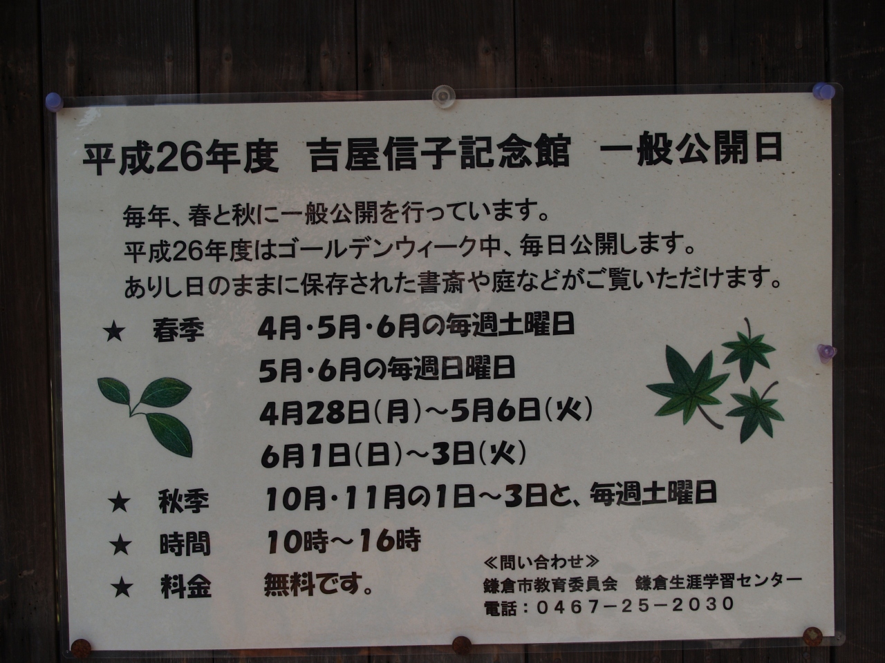 作家吉屋信子の遺志により鎌倉市へ寄贈された土地・建物が吉屋信子記念館となっている。
