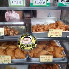 曜日によるのか、焼鳥を店先で焼いている日と焼いていない日がありますが、焼豚がなくとも揚げ物は、かなり充実しています。