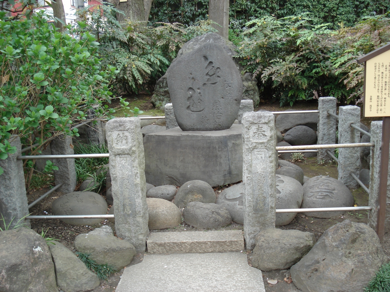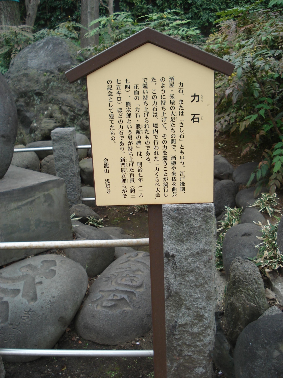 浅草寺境内の中を散策しているときに見つけた力石。立て看板を見たら、説明が書いてありました。江戸時代後期には力自慢がはやったようです。