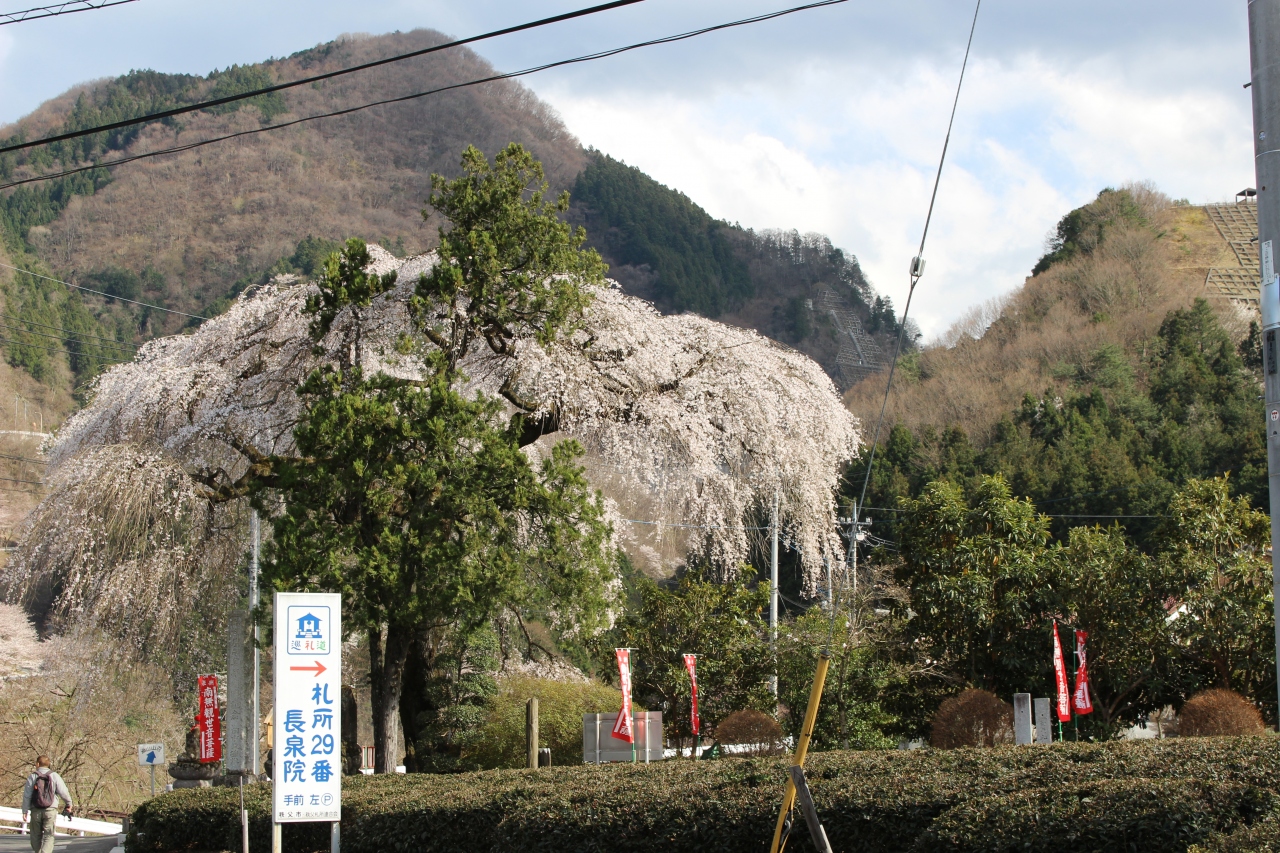 正面の山門からの桜は、ちょうど逆光になり、なかなか綺麗に見るのが難しい…