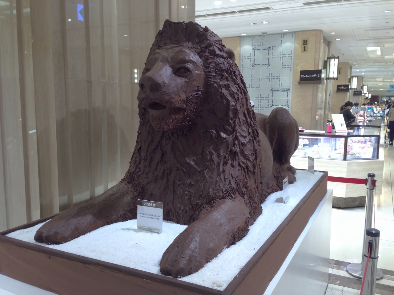 地下一階食品売り場にはチョコレート製の大きなライオン像が飾られていたり、可愛らしいライオン顔の蒸しどら焼きや羊羹、和生菓子が販売されていました。