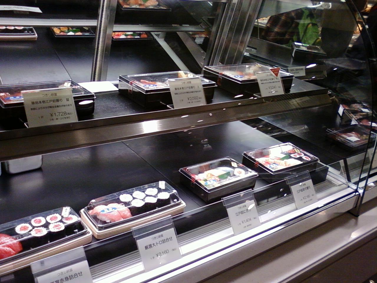 ここのつきじ鈴富さんは、新宿駅東口から四分くらい、また、東京メトロ新宿三丁目駅からすぐのところにある、新宿伊勢丹の地下一階、食品フロお魚、主にまぐろを使った、にぎりや巻きもののお寿司が目を惹きます。スペース的にはあまり広くなく、少し見つけるのが難しいですが、このフロアには意外にお寿司のお店が少ないので、見つけた人はラッキーという感じです。