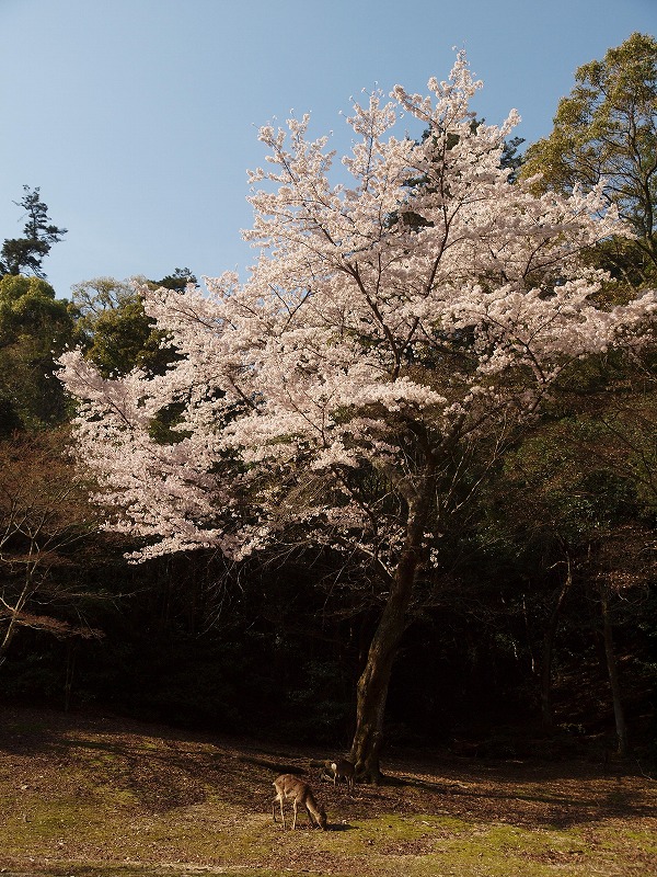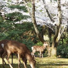 桜の木が多く、木の下で鹿たちがゆったりと過ごす様子を見ることができました。