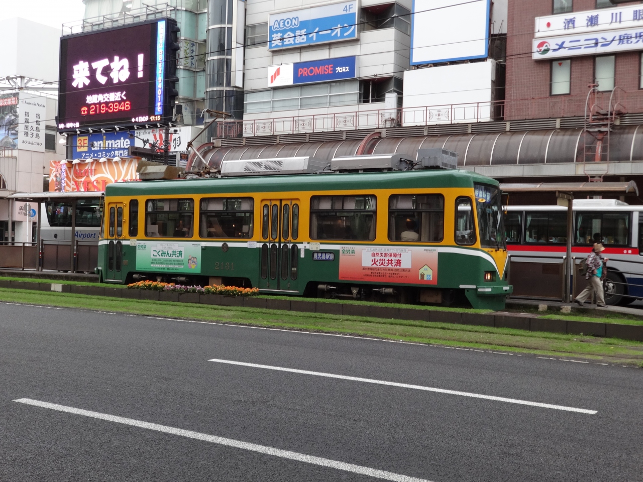 後ろ乗り・前降りで運賃後払いです。始発の鹿児島駅前乗り場に行くと3車両が停車していて見応えがあります。