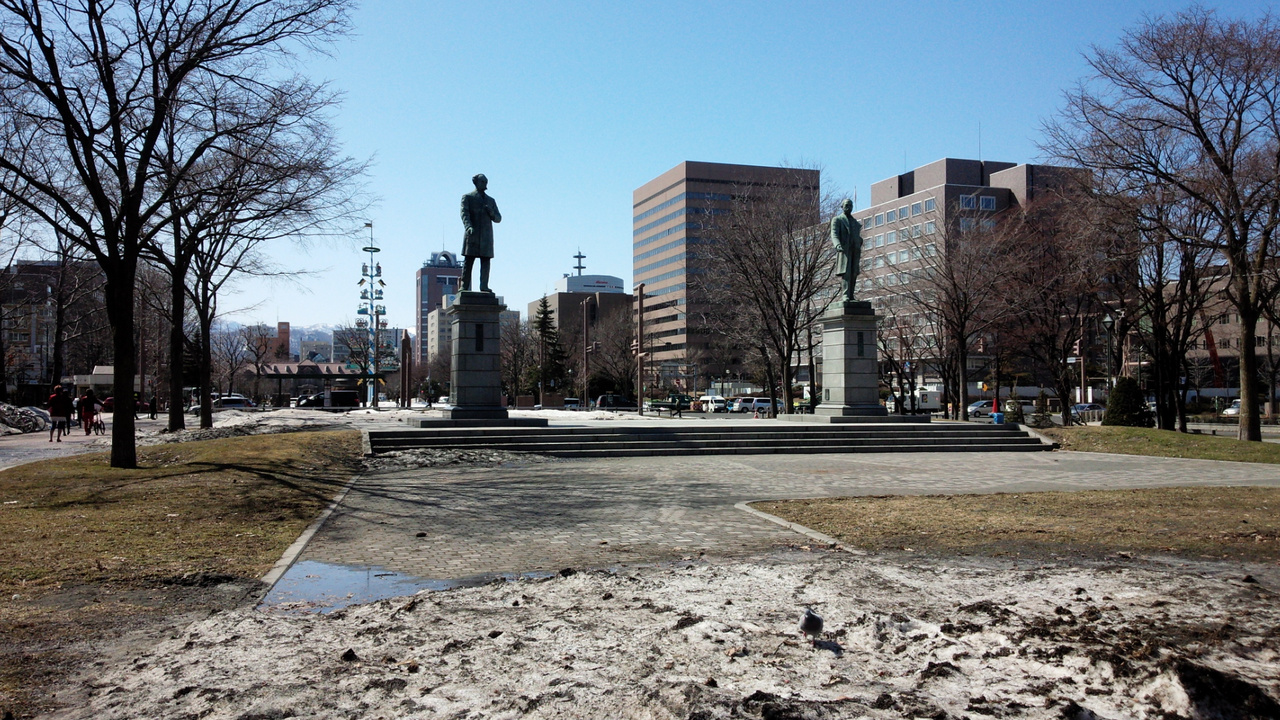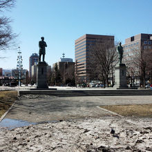 黒田清隆像と隣り合って、大通公園全体を見渡しているように見えます。
