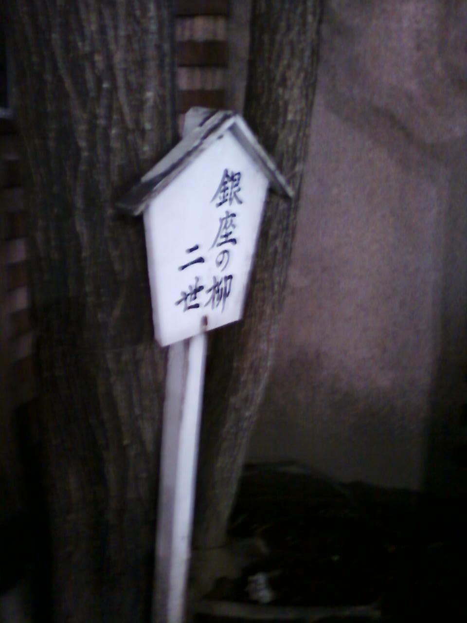 銀座の柳二世は、数寄屋橋公園のすぐ脇、泰明小学校の玄関先にります。銀座コリドー街もすぐそばです。島崎藤村と北村透谷の石碑の上に覆いかかるように立っています。銀座にはこのような記念となる柳があちこちにあるそうです。いろいろと探してみたくなりました。