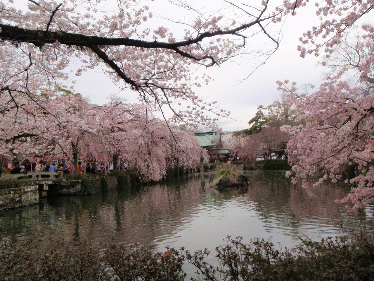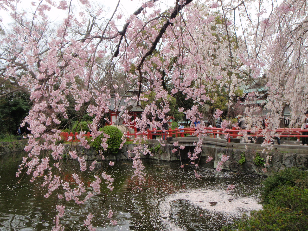 大きな池があり、そこに浮いた桜の花びらもとってもきれいでした。