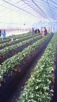 このいちご団地は北関東最大の規模で、111棟のハウスが集まっており、東京ドームがすっぽり入ってしまう広さだそうです。休日には県内外から多くの観光客で賑わい、カップルや子供連れの人達も多く見られました。肝心のいちごは、つぶが大きくてとても甘かったです。完熟とちおとめが食べ放題で、なにより時間無制限なのがいいですね。いちごでお腹いっぱいになったのは初めてです(笑)直売所で売られていたいちごももちろん美味しかったですよ。益子からとても近いので、観光ついでに寄られるといいと思います。
