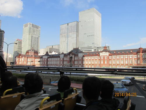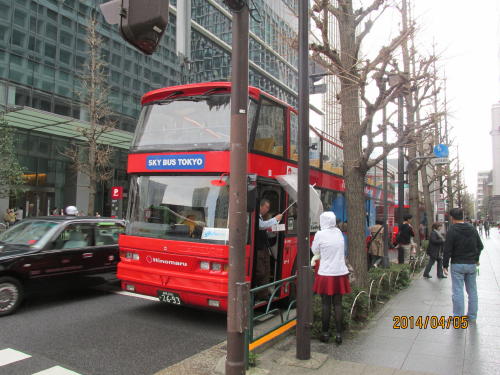 12時近く東京駅に着きましたが今日の入場は締め切りましたとの放送がありました。残念ですが折角来たのだからとスカイバスに乗って皇居・銀座・丸の内コースに乗車して皇居の桜を見る事にいたしました。連日の風で散り始めています。