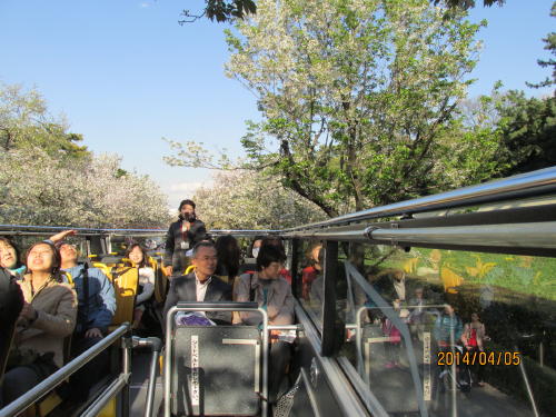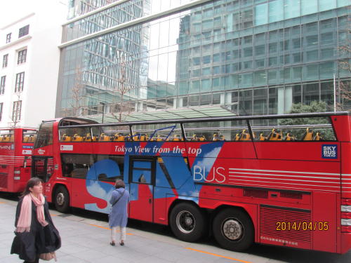 皇居を一周するオープンットップの観光バス、桜のシーズンは最高です。
