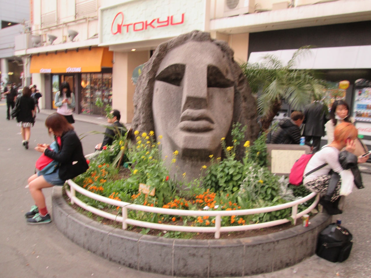 渋谷駅南改札付近にある顔の像です。東横線の改札が地下に移動後、混雑しないようになりました。東急百貨店を挟んで忠犬ハチ公像の反対側にあり、待ち合わせは混雑しているハチ公銅像前よりもこちらの方が適している。