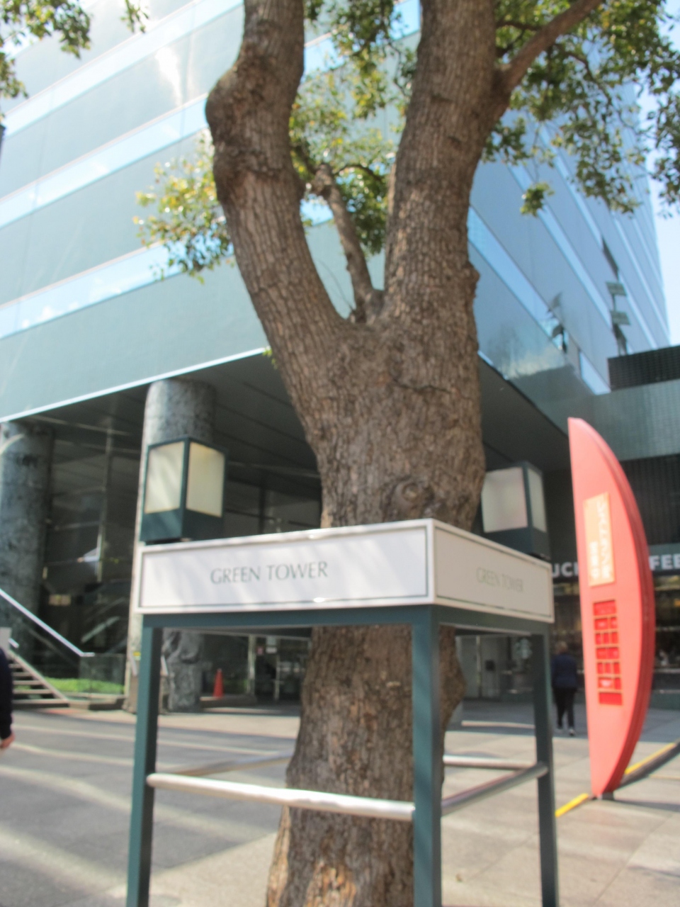 浄風寺の敷地を再開発して1986年に建てられました。名前の通り外壁がグリーンに統一知れているのでとても目立ちます。