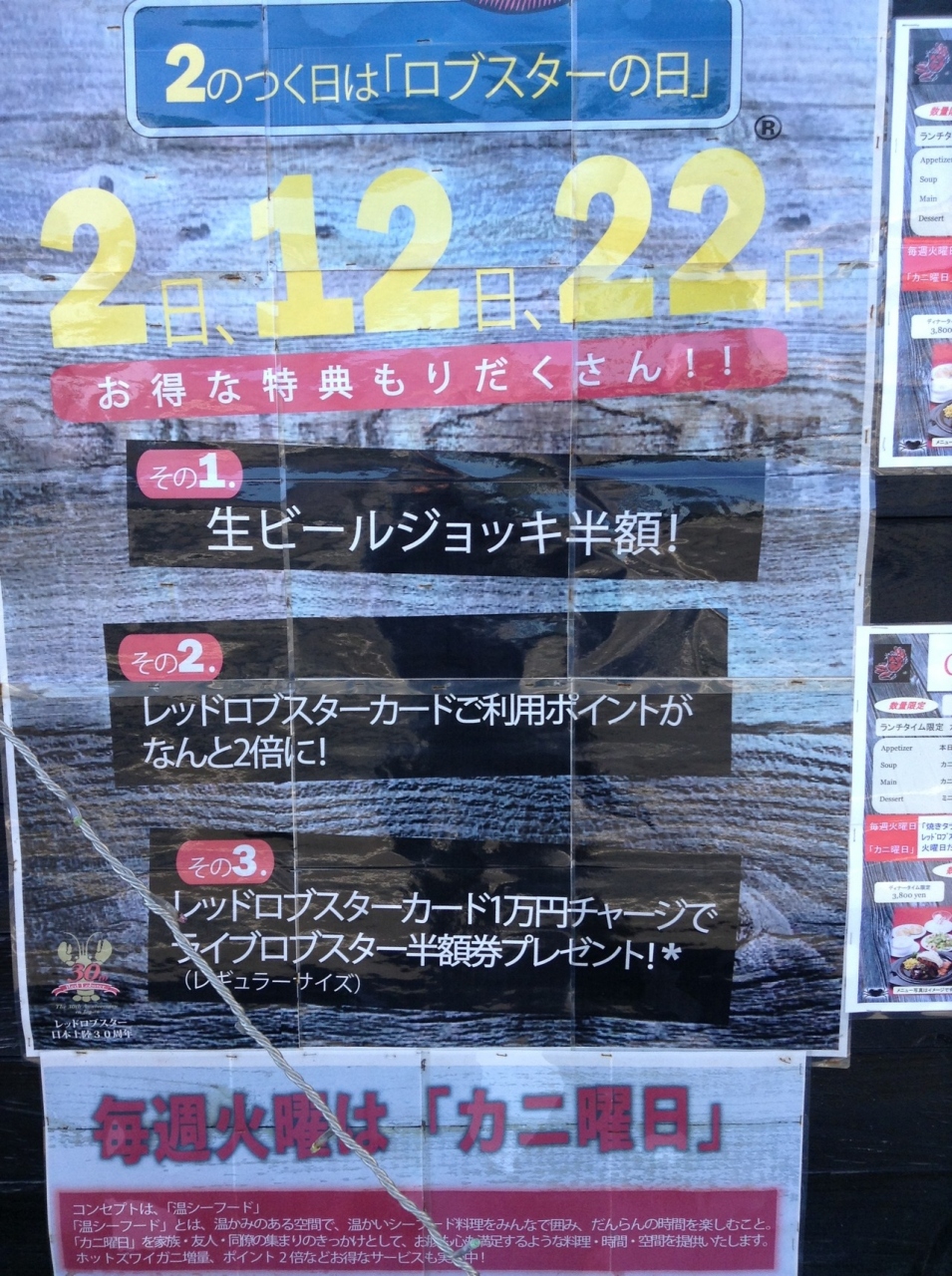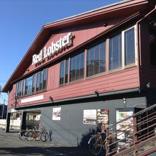 レッドロブスターつきみ野店は、下鶴間交差点の三叉路にあります。一階が駐車場で二階に上がると、ロブスターの入った生簀があります。