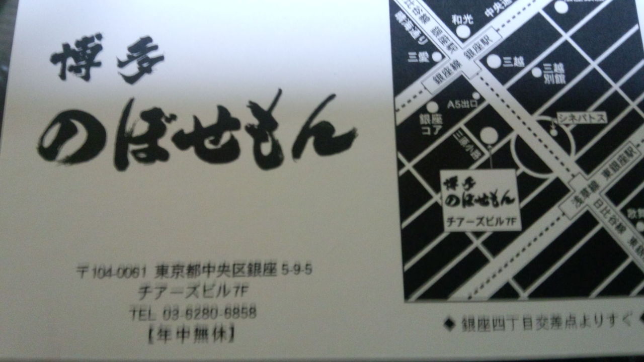 銀座4丁目、東銀座寄りのビル。5000円程度できる、飲み放題宴会可。3点盛り、イカと筍のサラダ、お刺身3点盛り、豚明太焼き、からし蓮根、串焼き、チキン南蛮などがコースの内容。飲み放題に鍋などのコースもある。