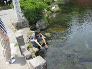 湧玉池は国の特別天然記念物に指定され、富士山本宮浅間大社の境内にあり、名水百選の1つです。湧玉池の水はすべて富士山の伏流水で、一年間ほとんど増減なく毎日湧き出ていて、富士宮市内を流れる神田川の水源となっています。古来より冨士道者は、ここで身を清めて六根清浄を唱えながら冨士登山する風習があるそうです。