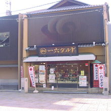 日本最古の温泉として知られる道後温泉。そのシンボルと言える道後温泉本館の向かいにある一六。松山を代表する銘菓のお店です。道後温泉本館に負けない重厚な造りで、街の雰囲気にもよく合っている。おみやげを買うのにも適したお店。
