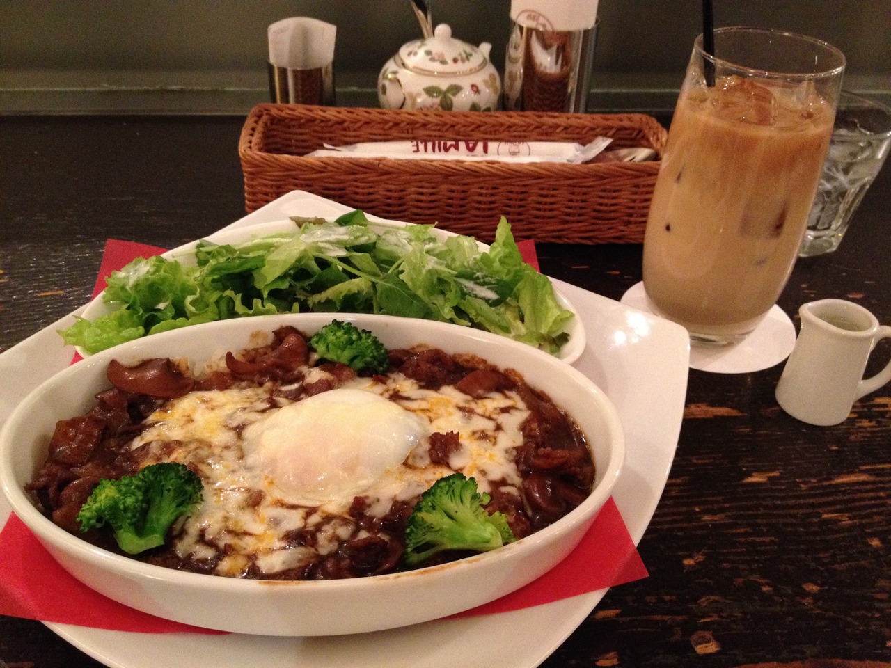 遅めのランチでひとりだったので、カウンター席に案内されました。食器はブランドもので、なかなか雰囲気があり、ゆったりできます。きっちり分煙化されているわけではないのでややタバコのの臭いがあるのが残念でしたが。。便利なお店です。