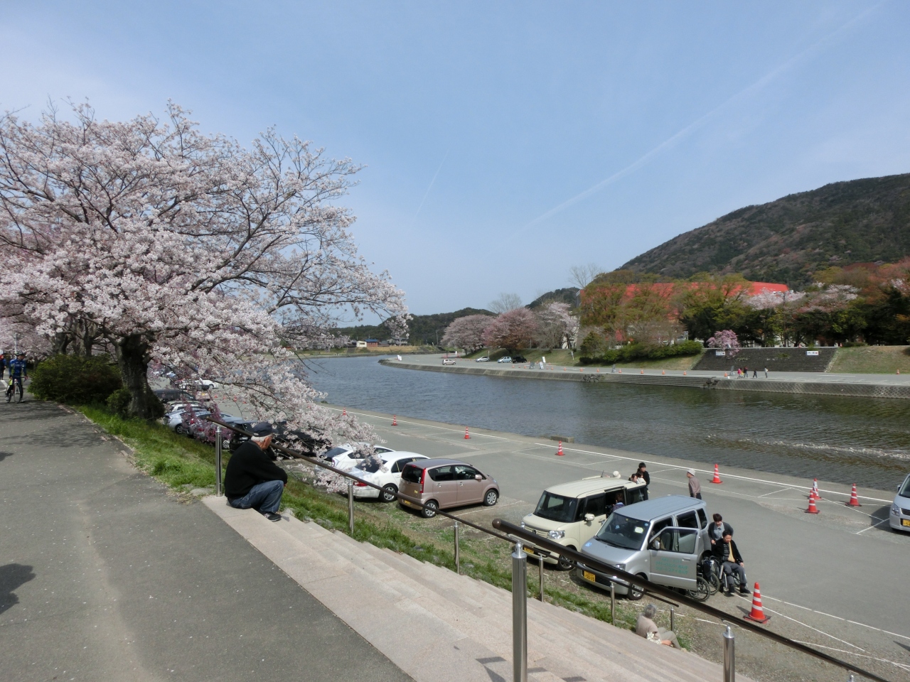 いちばん遠い、河原の駐車場になってしまい気持ちはゲンナリしていましたが、この河原の駐車場が満開の桜に囲まれていたので、むしろ気分よく参拝することができご機嫌でした!!