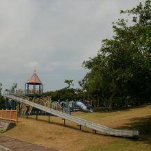 糸満市の市立中央図書館の横の坂をあがったところにあります。海が見渡せる高台にあり、自然がいっぱいの広い公園で、長い滑り台やジャングルジムなどのカラフルな遊具が設置されています。公園から小高い丘を登ると展望台もあって糸満の街が見渡せます。散歩コースも整備されており、木々の中を散策するのもおすすめですが、特別に観光客が行くような公園ではなく、地元の人が利用するような公園です。無料の駐車場があります。