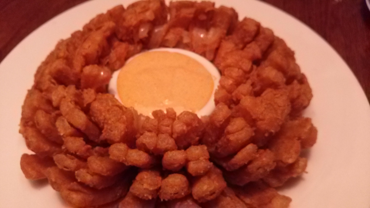 名物のブルーミン・オニオンは4人で食べても飽きる量です。。美味しいけど飽きるのでもう少し小さいサイズのものがあればいいのに・・といつも思います。
