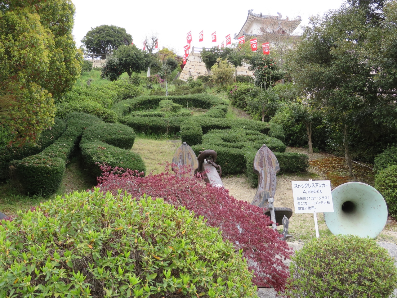 途中、村上水軍の○上マークと「水軍」という文字を模った植え込みもあります。