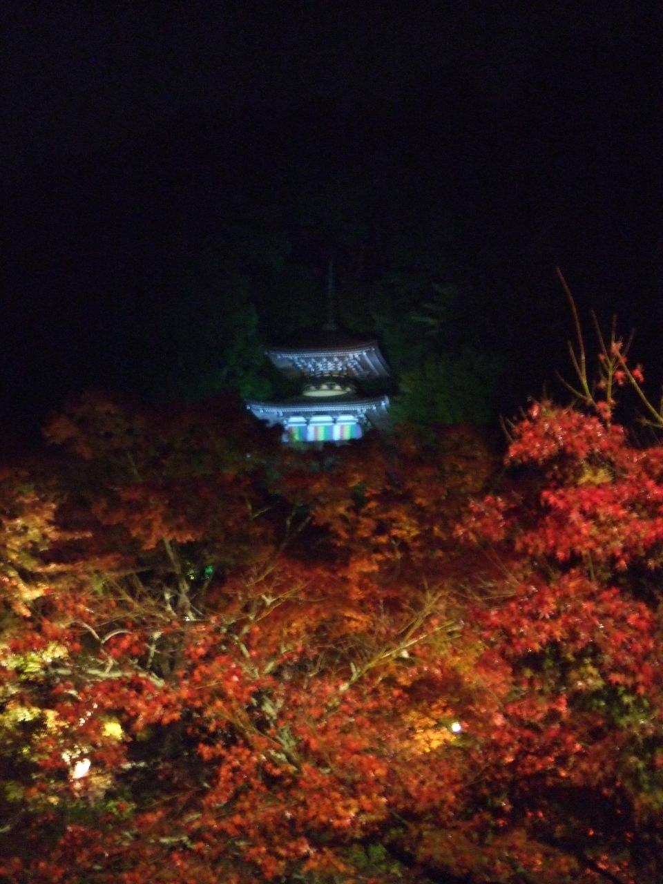 紅葉の時期に行きました。こちらはライトアップもあるということで、日程上、夜に行きました。昼間の紅葉も鮮やかでいいですが、夜は夜のよさがありました。紅葉の時季に京都に行ったら、あそこもここもと見に行きたくなるので、ライトアップがあるところは夜のスケジュールに入れてもよいかと思います。