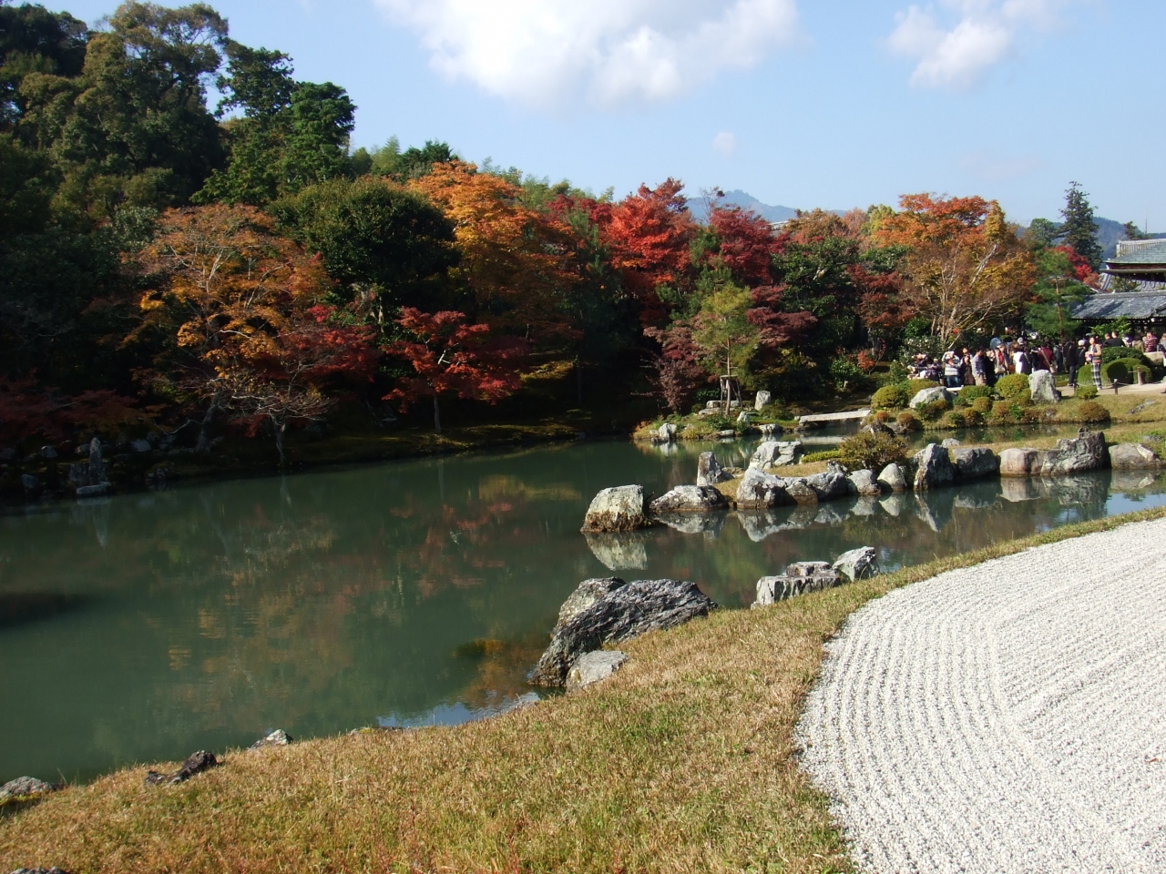 嵐山に行った際に寄りました。こちらのお寺は世界遺産に指定されています。とにかく広い敷地で、歩いてまわるのに時間がかかりました。でも、庭園はとてもすばらしく、お寺の縁にすわって、ゆーっくりとお庭を眺めました。紅葉のシーズンだったので、座る場所をとるのも大変でしたが、みなさん流れるので、ゆったりした気持ちで訪れるとよいかと思います。