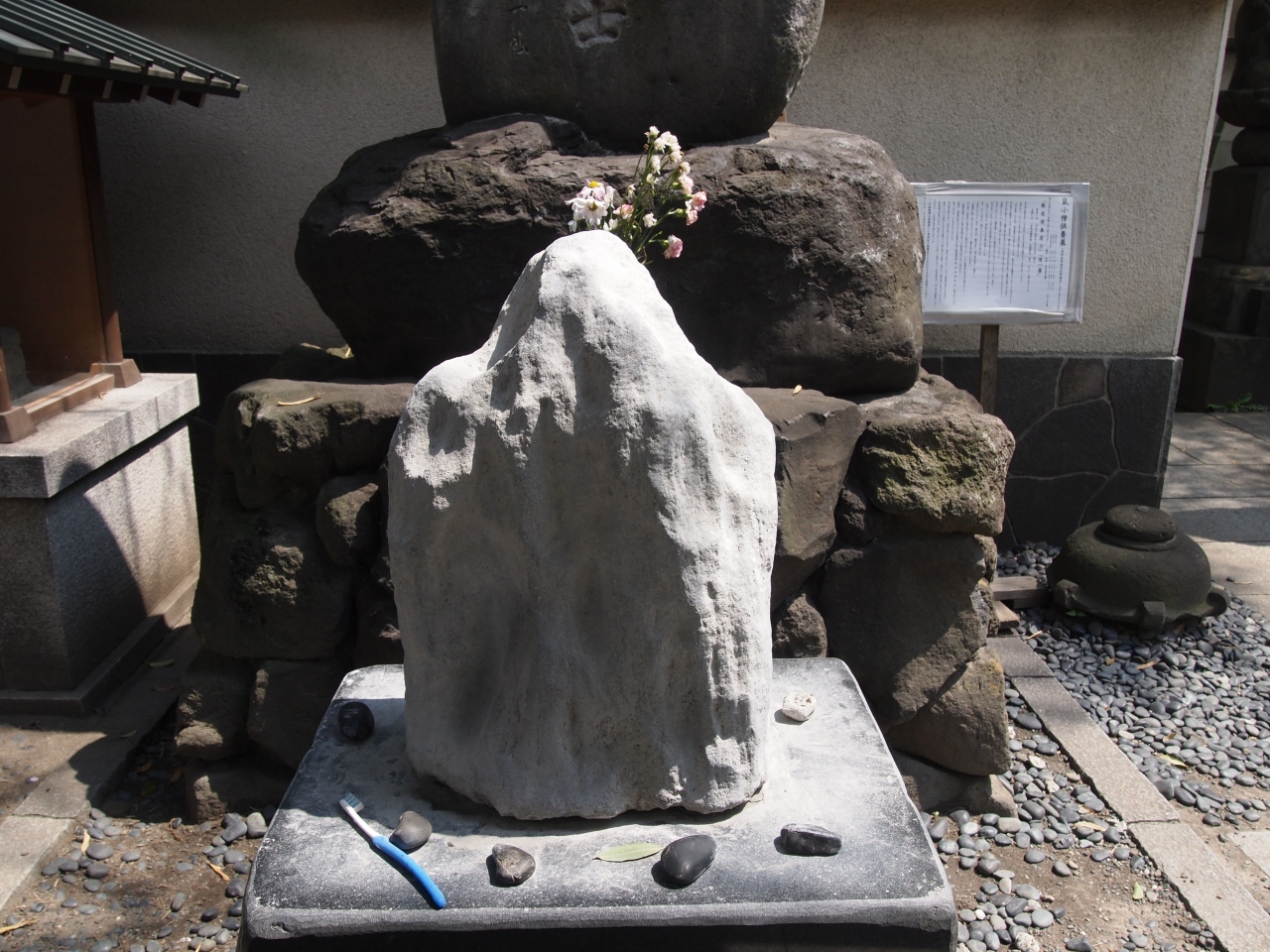 供養墓の前に石があって、なぜか歯ブラシが置いてありました。そのブラシでその石をかいて(削って?)持っていくと金運がよくなるみたいです。