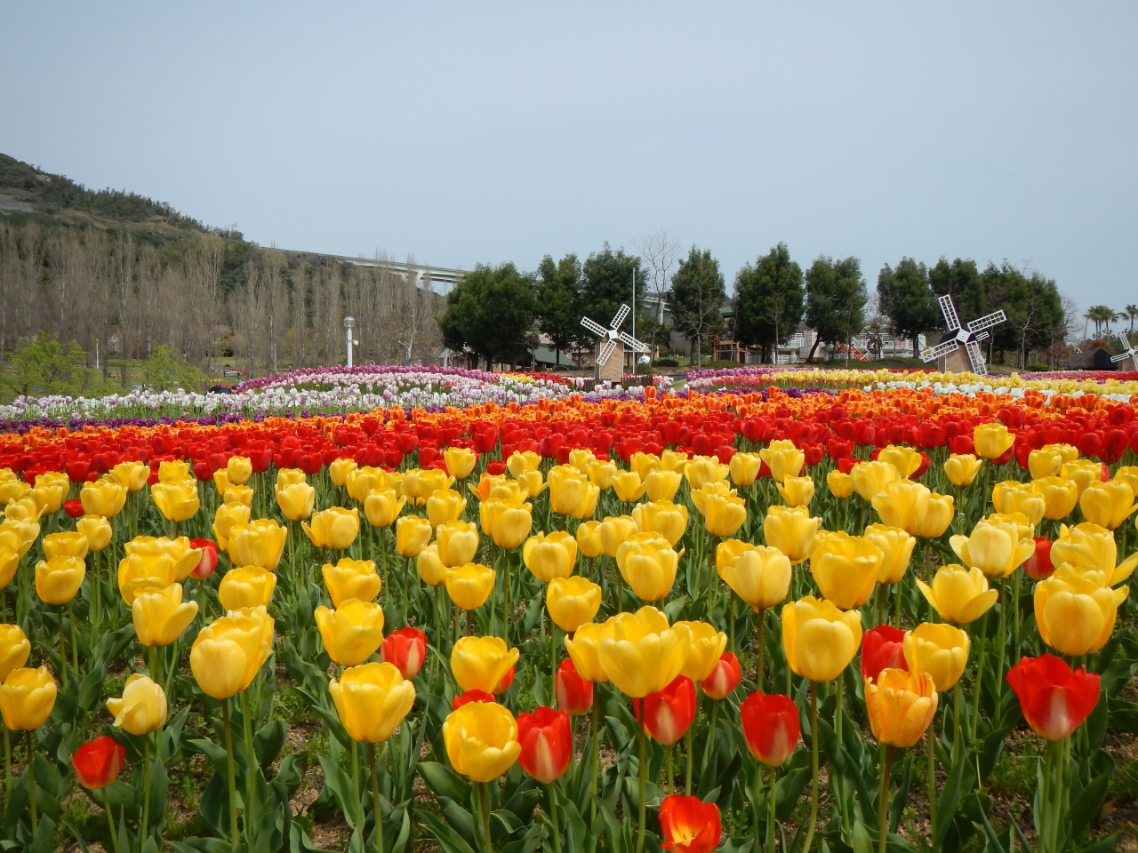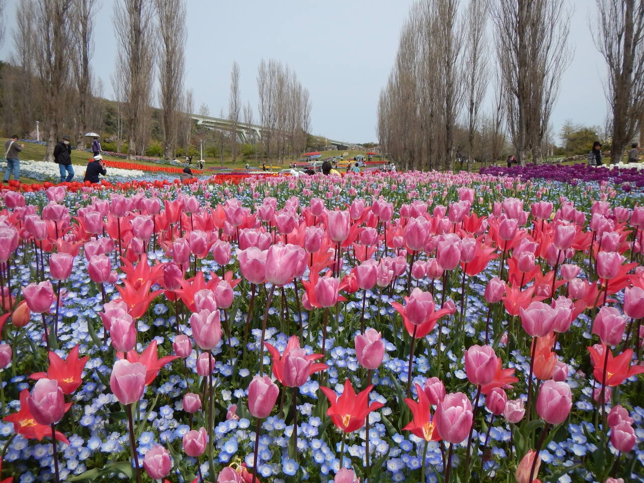 2014年4月12日チューリップが満開でした。9時過ぎに到着しました。開演時間は9時半からでしたが、なぜか既に開演していました。花のシーズンは三ノ宮・高速舞子からのバスが混みます。私は速いバスでしたので、積み残しはありませんでしたが、要注意です。新神戸・三宮からはJR西日本と本四海峡バスだけですが、高速舞子からは、淡路交通バスが出ています。