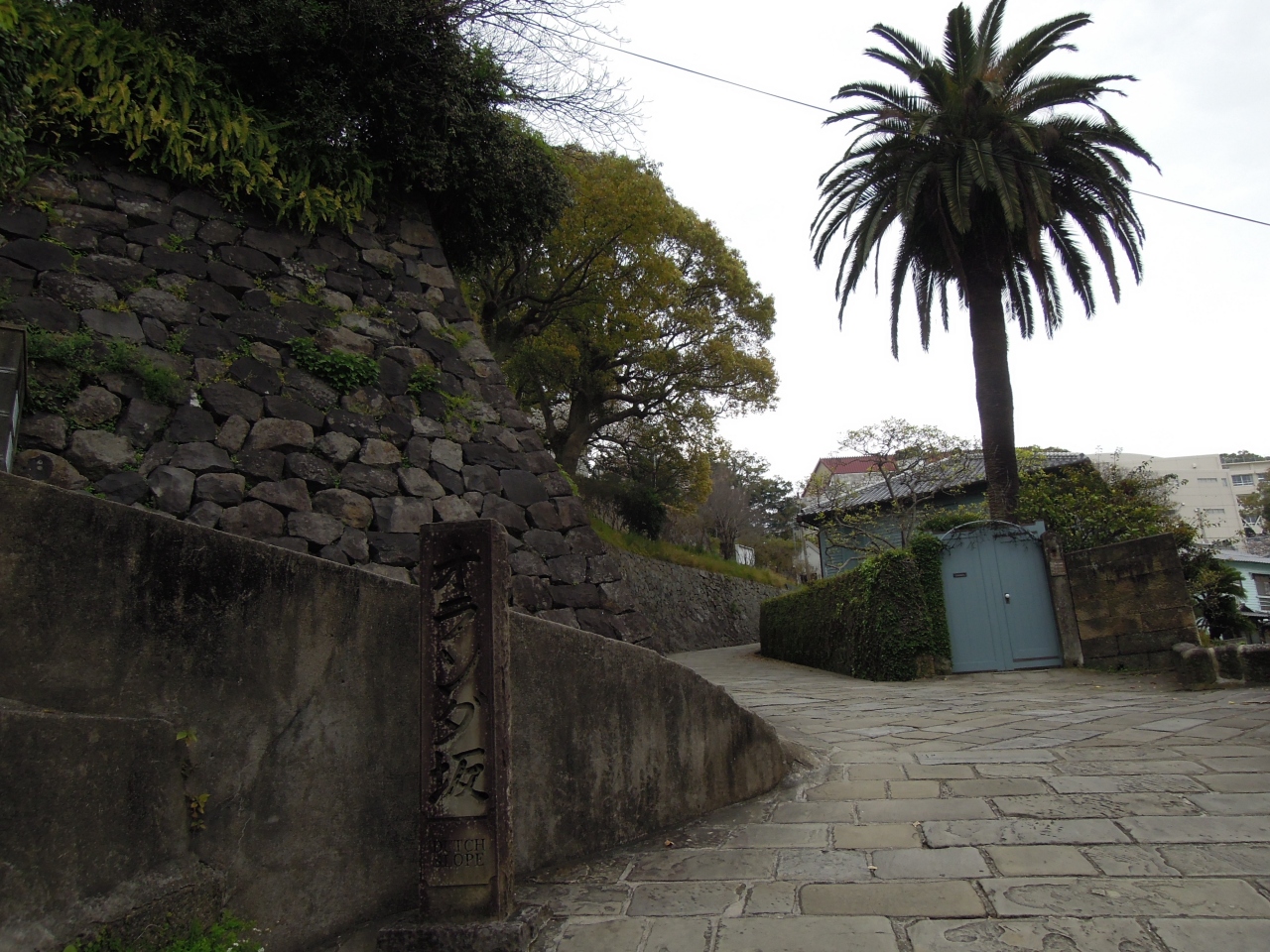 山手方面に向かい、活水女子大方面を登る坂です。当時、オランダさんと呼ばれた西洋人が行き交った坂で、周辺のミッションスクールの雰囲気に合う静かな雰囲気が旅に快い感じを与えます。是非お勧めです。登り切った後は、急坂ですのでご注意を!