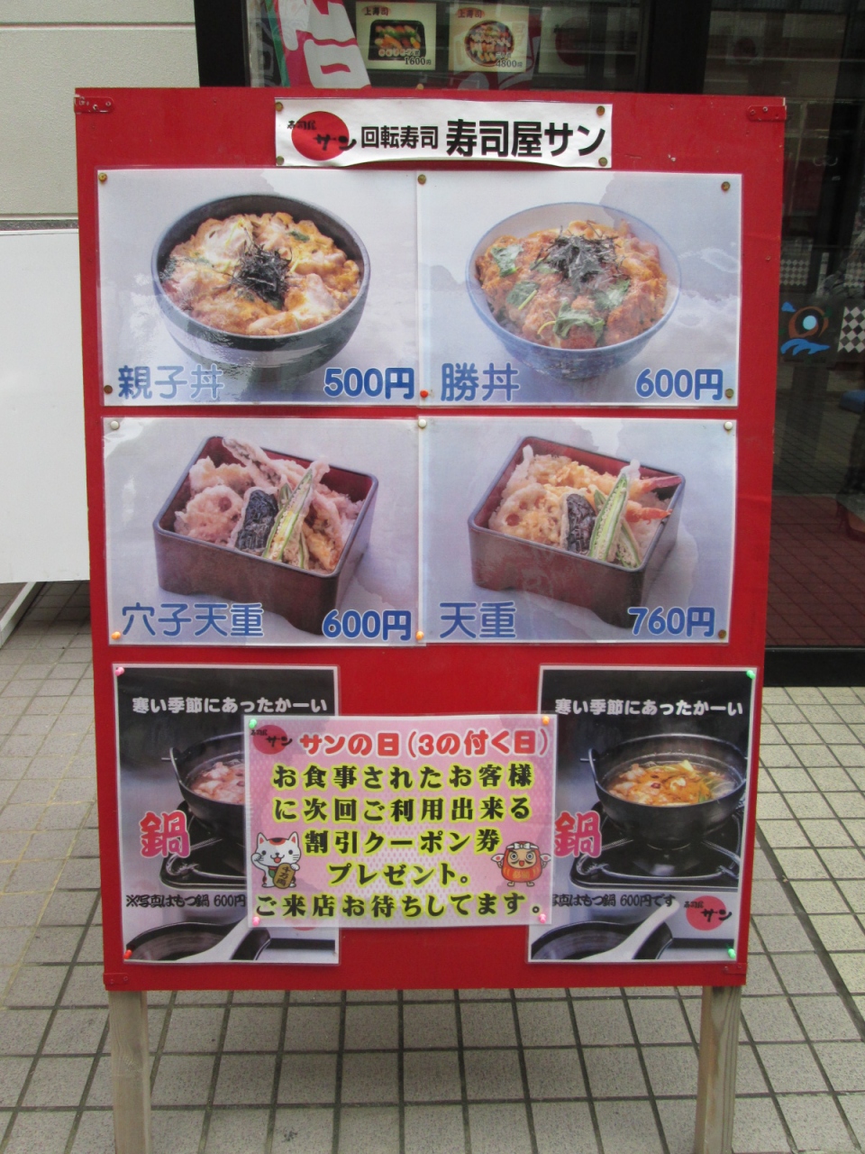 ランチを頂きました。いわゆる「回転寿司」でうが、”穴子天丼””かつ丼””親子丼”