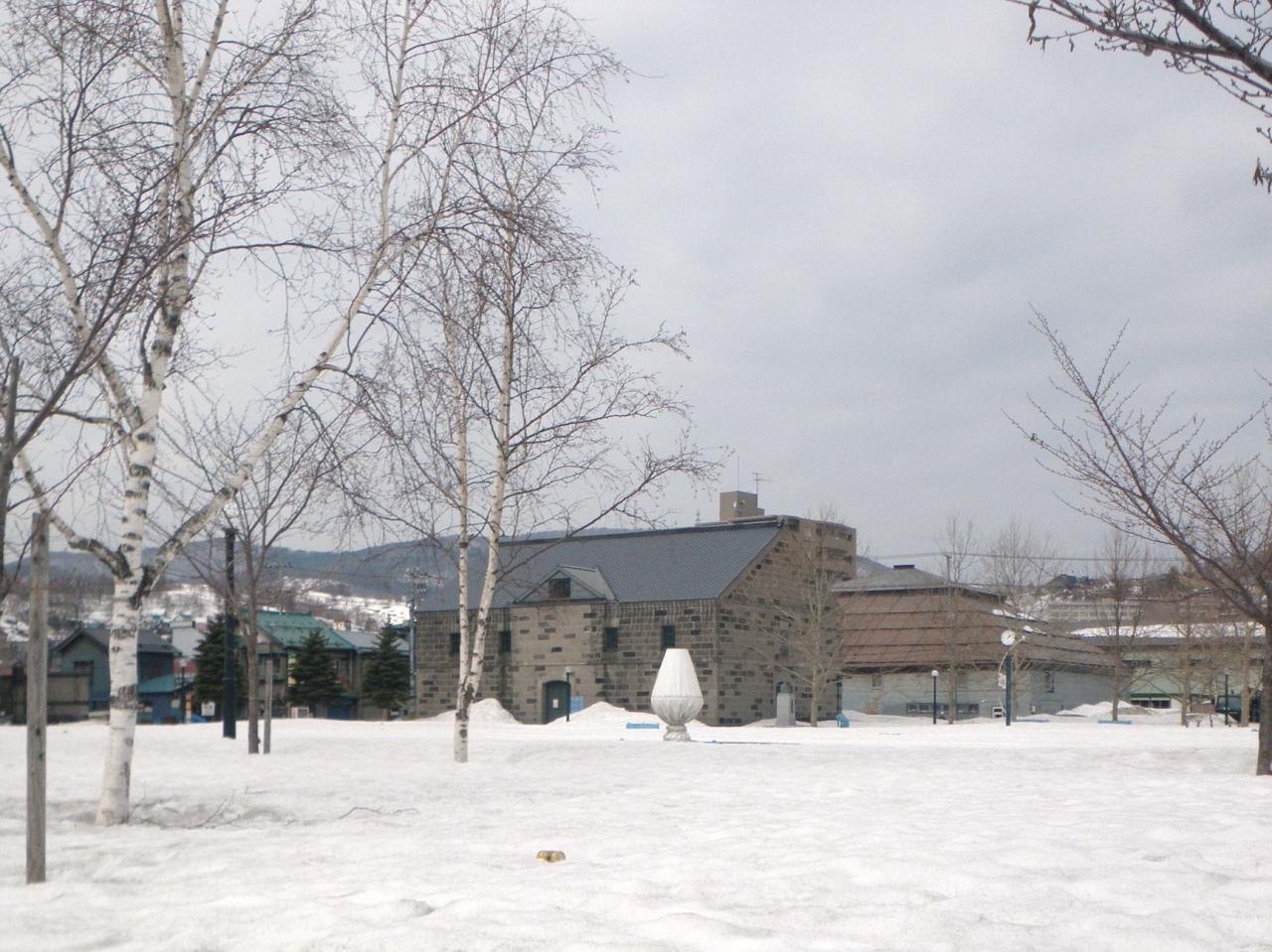 4月上旬は運河公園も雪に埋もれていたため、離れての観賞になりました。